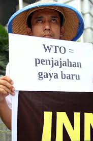 Tetapi alasanterpenting bagi kaum miskin mengapa mereka harus menghentikan WTO adalah bahwaWTO tidak akan pernah memberi manfaat apa-apa bagi kaum miskin terutamaindonesia. Sejak indonesia menjadi anggota WTO pada januari 1995, Indonesiatelah berusaha untuk menjalankan “reformasi kebijakan pertanian danperdagangan,” seperti; yang digariskan oleh WTO yakni menuju liberalisasiperdagangan dan pertanian. Hal ini merupakan konsekuensi dari ditandatanganinyakesepakatan tentang keputusan final putaran Uruguay (Uruguay Round) yang telahmelahirkan WTO. Indonesia meratifikasi WTO melalui UU NO. 7/1994 tentangpengesahan World Trade Organization/WTO. Pada tahun yang sama, pemerintahindonesia telah membuat sebuah keputusan sangat penting tentang kebijakanderegulasi (peraturan) investasi tepatnya pada bulan juni 1994. Sejak saat ituberbagai kebijakan lain seperti kebijakan bidang pangan, air, pertanian, danlain sebagainya juga disesuaikan dengan pendirian WTO yakni menganut prinsipneoliberalisme dan pasar bebas.